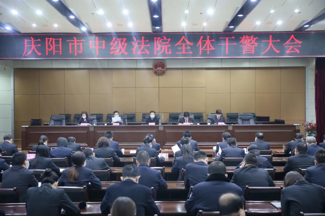 4月1日,庆阳市中级人民法院召开全院干警大会,通报分析2020年第一季度审判质效情况,统筹推进审判执行、疫情防控及清明节文明祭扫等当前重点工作。市中级法院党组成员、副院长刘宏伟主持会议并讲话,院领导班子成员郭新红、杨君峰、祁焕能、李海红及全体干警参加会议。