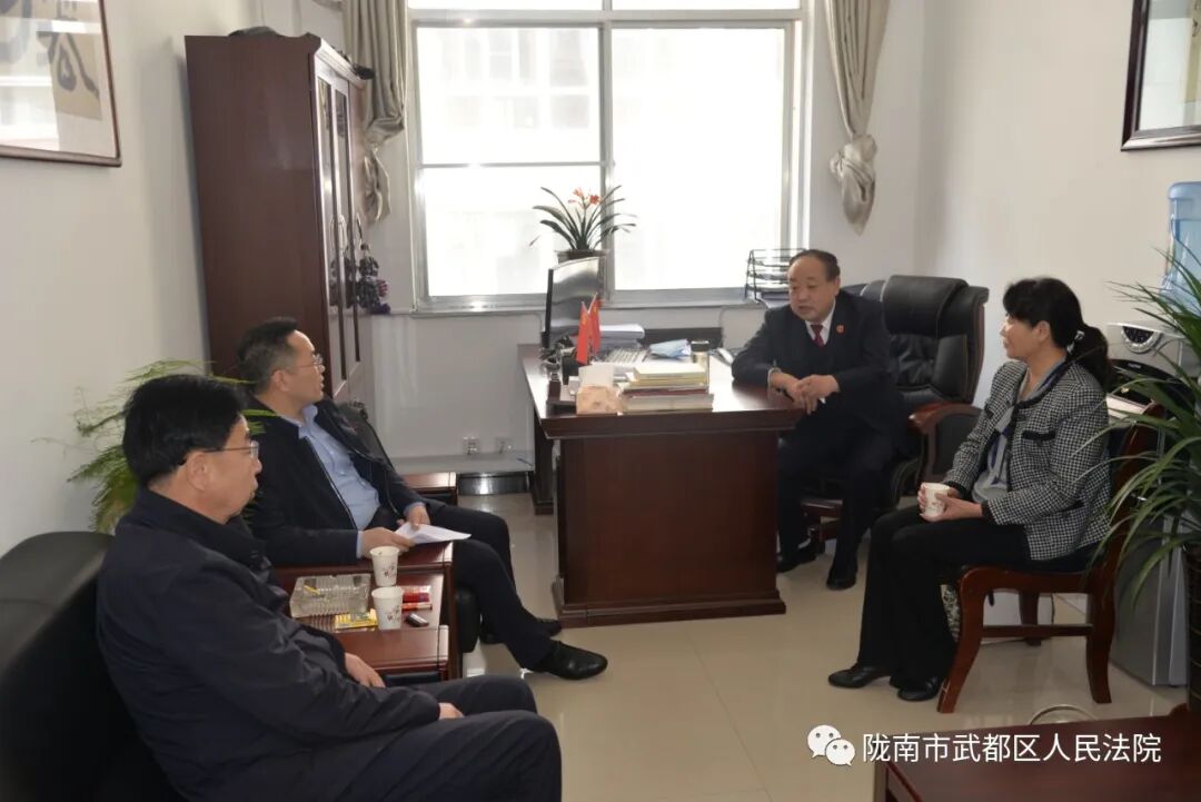 4月14日,省高院行装处副处长李年文、省高院法警总队副总队长刘克勇、省高院行装处干部周军、李卓敏等一行深入武都区法院调研“两庭”建设及司法警务保障工作。市法院党组副书记、副院长蒲黎生,武都区法院党组书记、代院长后清瑞陪同调研。