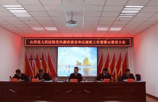 会上传达了中央和省市县纪委全会以及上级法院党风廉政建设和反腐败工作会议精神,总结了2019年纪检监察工作,并对2020年山丹法院党风廉政建设和反腐败工作进行了安排部署,通报了2起法官系统枉法裁判的典型案例,并对本院职务违法案例进行了深入剖析,观看了警示教育片《护航脱贫攻坚》,签订了党风廉政建设目标责任书。