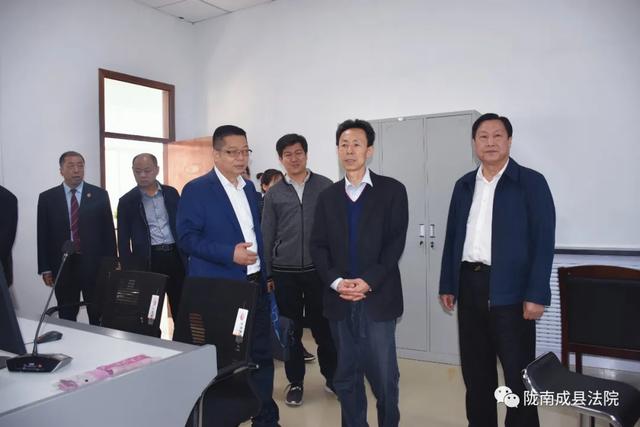调研组实地查看了成县法院诉讼服务中心、诉前调解室等基础设施建设情况,随后召开座谈会。