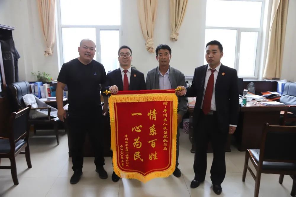 “原本以为这次强制执行会因为疫情影响而被耽误,没想到这么快就拿到了执行款,感谢平川区法院执行局!”在收到执行款后,申请执行人村委会主任高兴的说道,并将一面印有“一心为民,心系百姓”的锦旗送给了执行局。