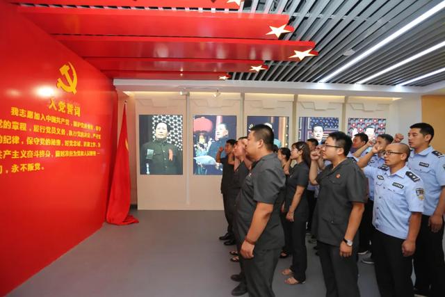 在“智慧党建”教育基地讲解员的带领下,秦安法院党员干警详细了解其建设背景、设施配套、系列展厅等,实地体验VR虚拟现实、体感互动等多媒体技术手段。通过听、看、学、读、讲等方式,真实全面了解秦安热血儿女在中国共产党的领导下“对党忠诚、信念坚定、不怕牺牲、无私奉献”的革命历史,进一步激发秦安法院党员干警在新时代干事创业的内生动力。随后,全体党员干警重温入党誓词,在党旗下接受心灵的净化和洗礼,重温入党宣誓时的庄严承诺和坚定决心,牢记党员的政治责任和历史使命。