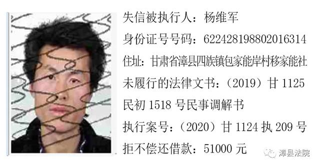 漳县人民法院失信被执行人名单发布(2020第三期)