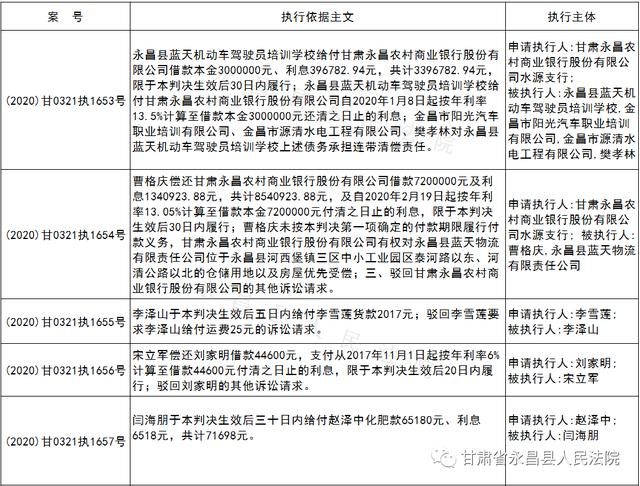 以下为永昌县人民法院执行庭8月20日-31日新收案被执行人名单