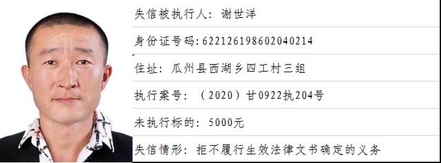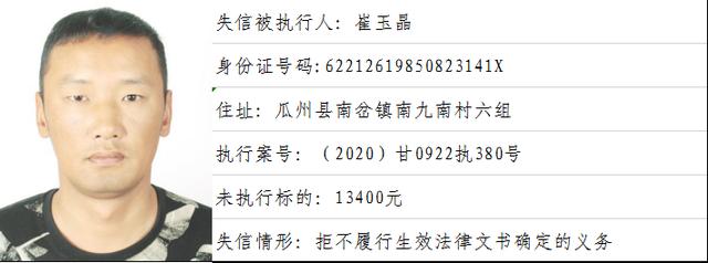 瓜州县人民法院关于公布2020年度第二期失信被执行人的公告