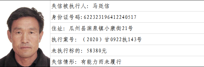 - 2020-04-10瓜州县人民法院关于公布2020年度第一期失信被执行人的公告