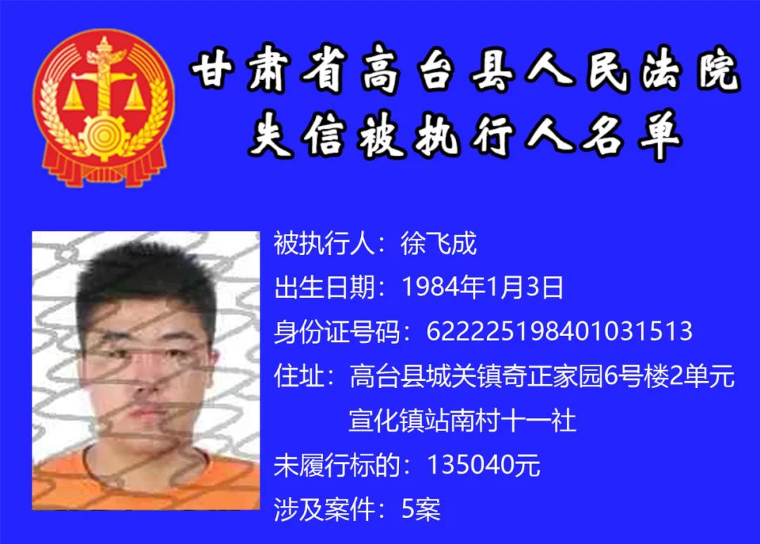 高台县人民法院公布失信被执行人名单(自然人)
