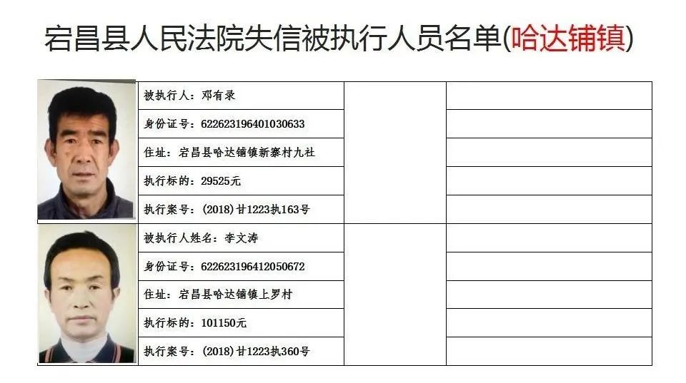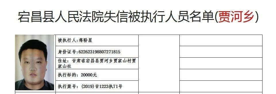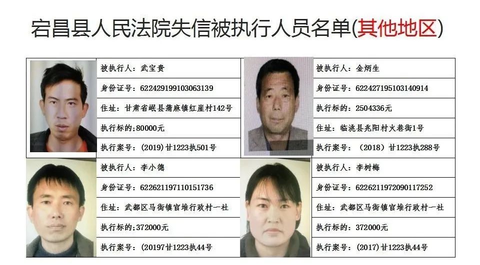 - 2021-08-03甘肃公布6名失信被执行人,姓名+高清照+金额被曝光!