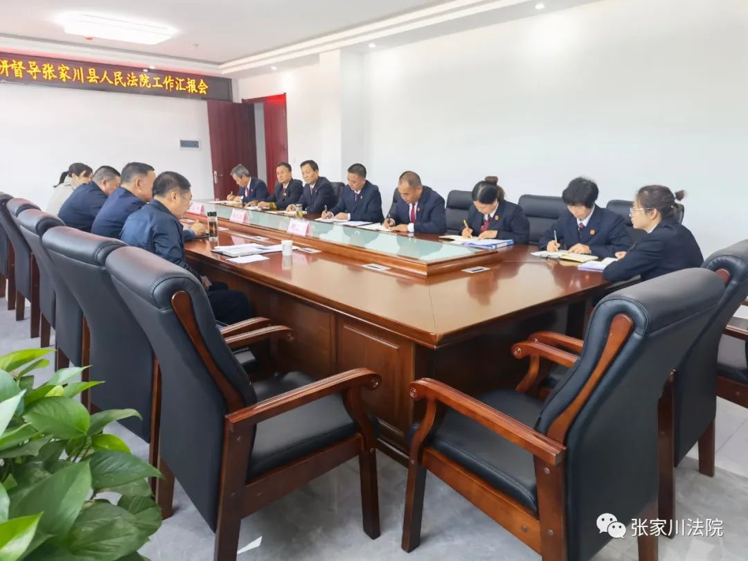 9月27日上午,天水市中级人民法院党组成员、副院长侯正兴、立案庭庭长胡兰斌、信访室主任高涛一行深入张家川县人民法院调研督导诉服平台建设和信访工作并召开汇报会听取县法院有关工作情况汇报。院党组书记、院长王海洲陪同调研。