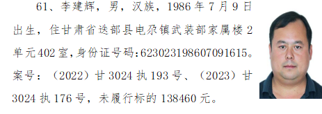 - 2024-04-07兰州西固法院曝光新一批失信被执行人