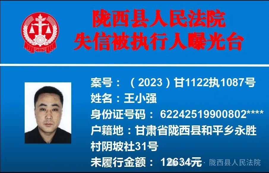 - 2024-07-11这2人已经被定西陇西法院纳入失信被执行人名单,请谨慎交往!