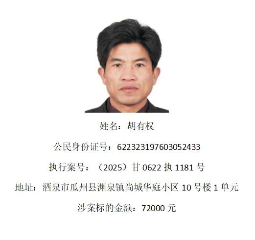 - 2025-10-13最高51万不履行!甘肃最新曝光6名失信人