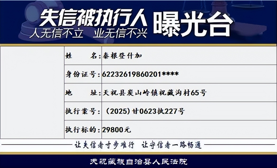 - 2026-01-04最高45.7万不履行!甘肃曝光22名失信被执行人