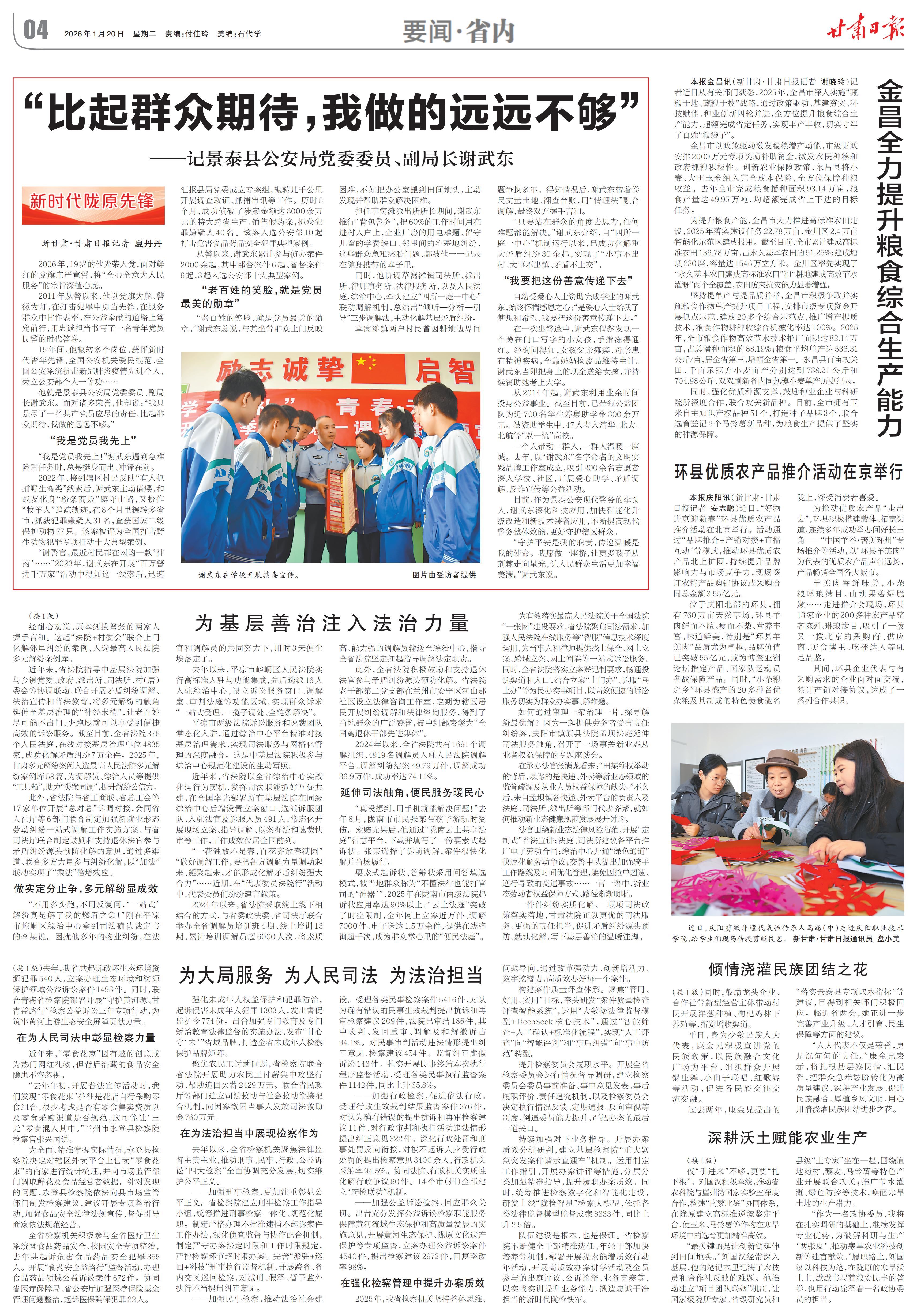 一件件纠纷实质化解、一项项司法政策落实落地,甘肃法院正以更优的司法服务、更强的责任担当,促进矛盾纠纷源头预防、就地化解,写下基层善治的温暖注脚。