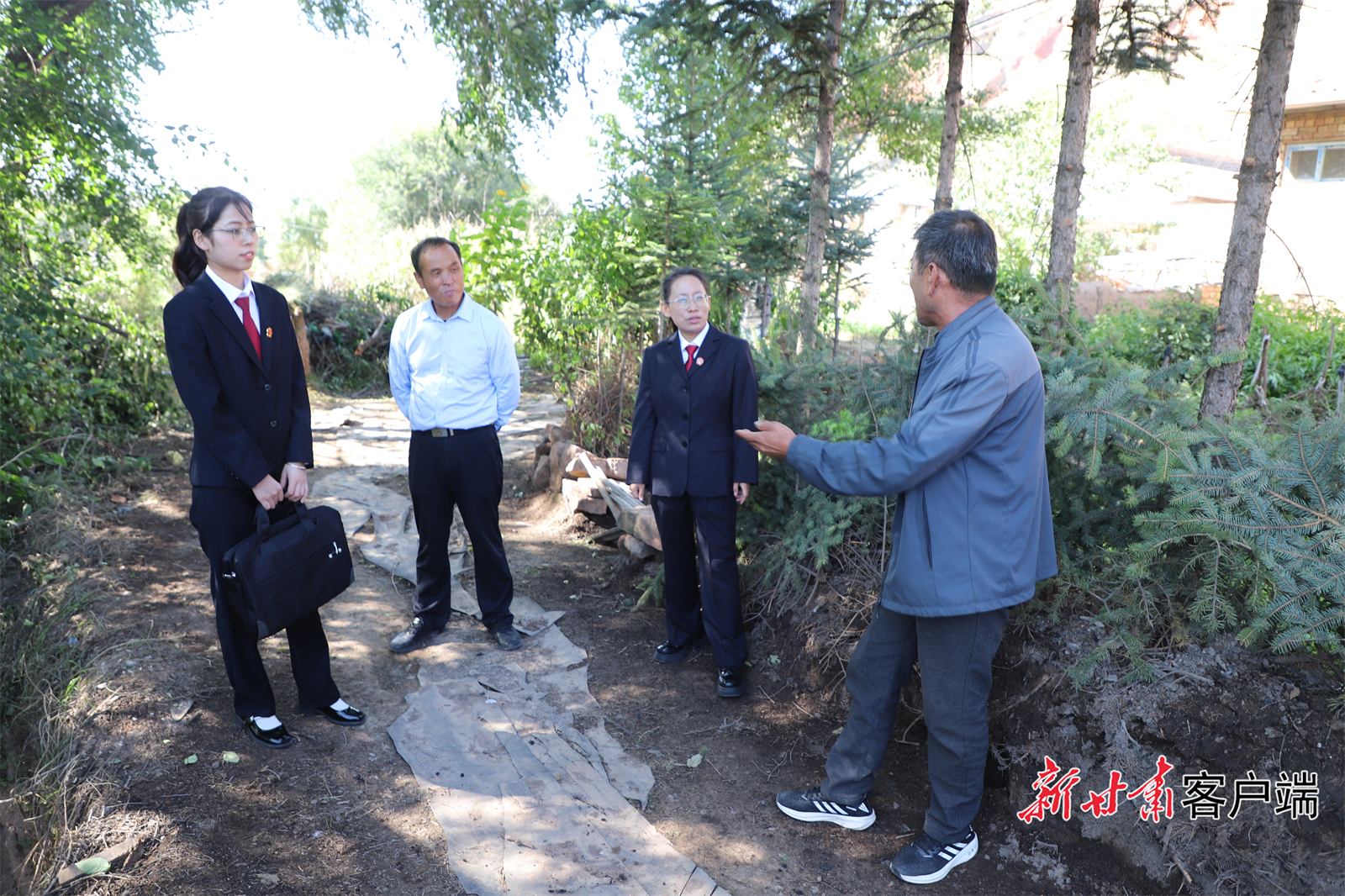 定西市渭源县法院法官李秋艳(右二)回访当事人了解道路通行情况。新甘肃·甘肃日报通讯员侯建清 摄