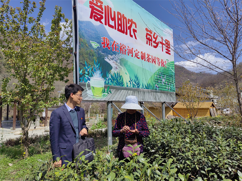 武都农合银行金融助理深入田间地头为茶农开展惠农政策宣讲。