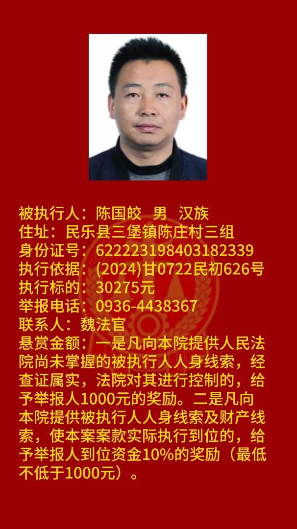 - 2025-10-16举报最高奖16.5万元!甘肃法院全网征集这17人线索