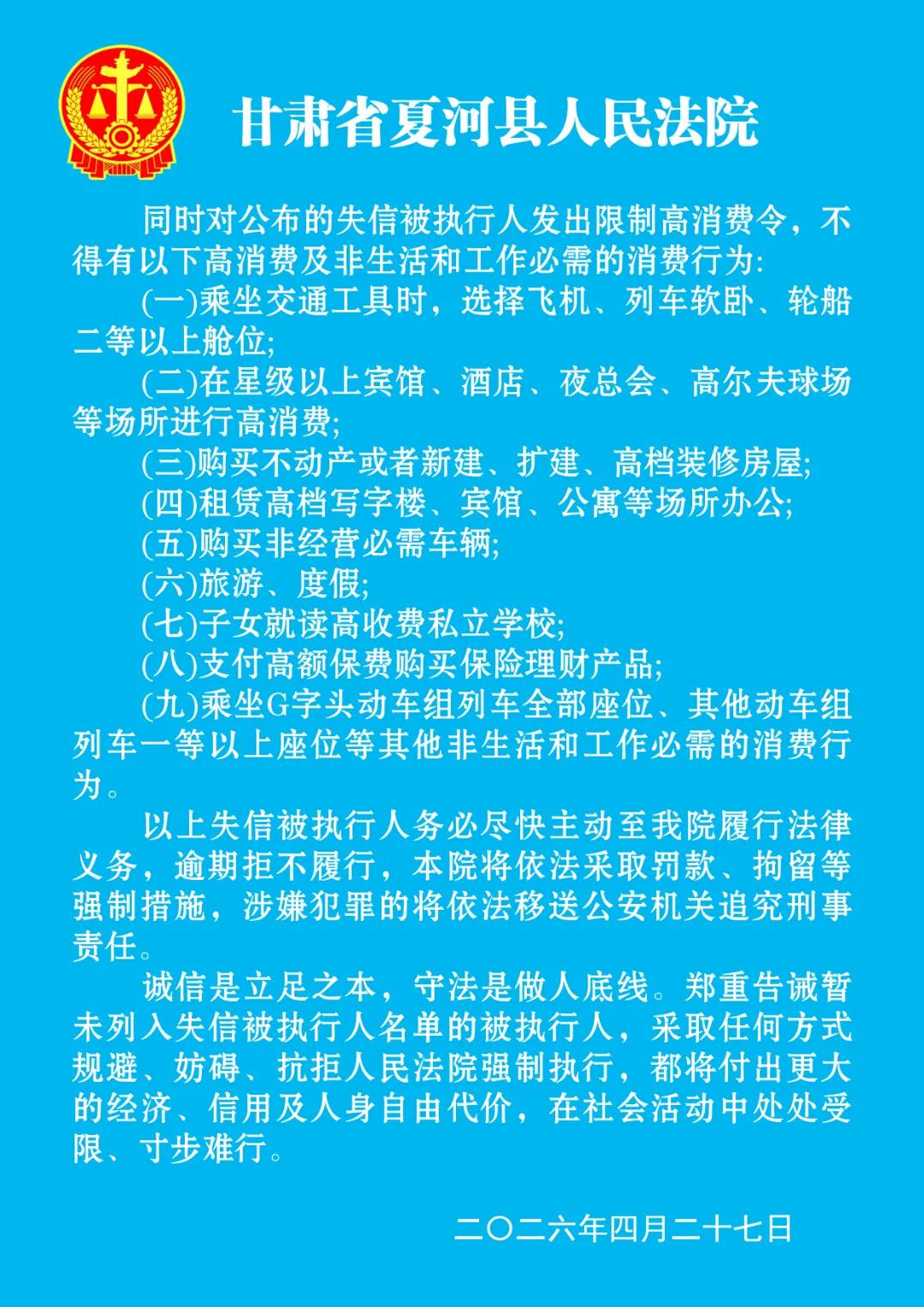 不得旅游、度假!这26人被甘肃法院纳入失信名单+限制高消费